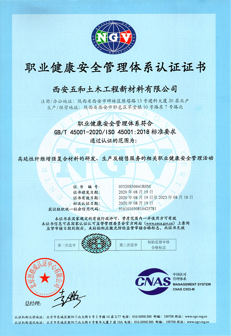 职业健康安全管理体系认证证书