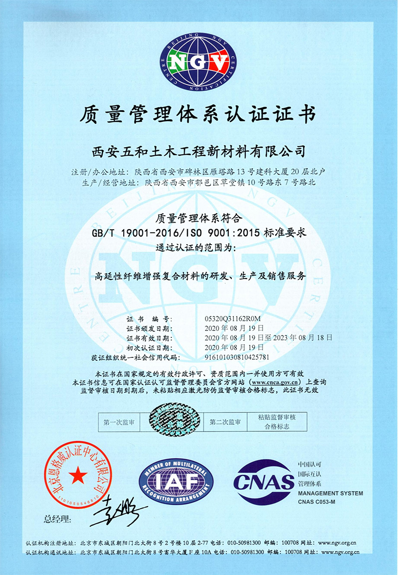 质量管理体系认证证书